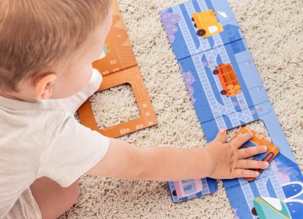 Nápadité puzzle pro děti od 2 let spojuje skládání, logické třídění a první počítání. Děti skládají 10 zvířecích výběhů ze ZOO a přiřazují k nim žetony se stopami, krmením nebo číslicemi. Součástí jsou i 4 zvířecí figurky pro další hraní. Extra velké kartičky z 2 mm silného kartonu se snadno drží i těm nejmenším. Hra rozvíjí logické myšlení, poznávání, zrakové vnímání i základní matematické dovednosti. Doporučená cena 399 Kč.