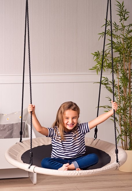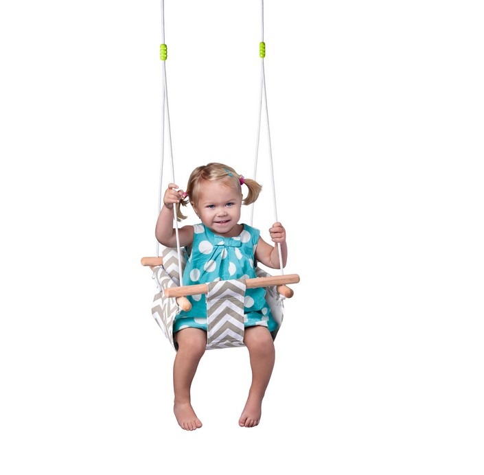Pohodlná dětská houpačka pro nejmenší je tvořena masivním, hladce broušeným, dřevěným rámem a textilním materiálem (100% bavlna) v šedém provedení. Je ideální pro odpočinek nejmenších dětí, odnímatelný polštářek zajišťuje komfortní sezení v houpačce. Dítě lze do houpačky komfortně vložit a za lehkého pohupování v ní může příjemně odpočívat. Kovové kroužky a pevná lana slouží k snadnému zavěšení do téměř všech typů houpačkových háků. Lze použít ve venkovních i vnitřních prostorách. Nosnost houpačky: 35kg