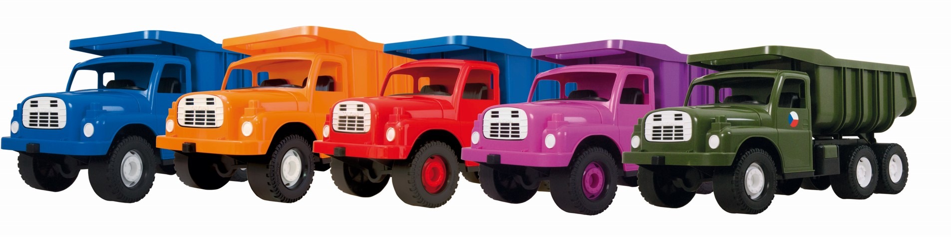 Ještě větší výběr nabízí Tatra 148 v menším, třiceticentimetrovém provedení. Oranžovou, růžovou a modro-červenou doplňuje hned několik oblíbených modelů. Patří k nim modrý valník, oranžová míchačka, žlutý bagr a také vojenská varianta s odnímatelnou plachtou či hasičská Tatra s vysouvacím žebříkem otočným o 360 stupňů. I v tomto případě se můžete spolehnout na kvalitu a bezpečnost. Malá Tatra od Dino je vyrobena z plastu s potravinářským atestem a je vhodná pro děti již od jednoho roku. Cena je 349 Kč.