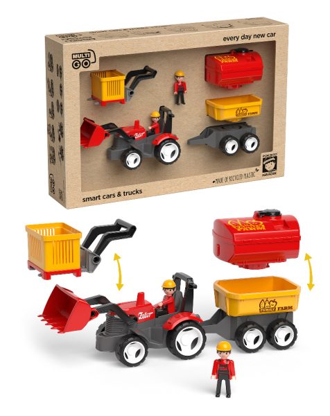 Děti baví hračky přetvářet a různě je kombinovat. Právě to umožňuje stavebnicový systém MultiGO®. Jednou z novinek této řady je dárkový farm set v eco-friendly balení. Obsahuje traktor s výměnnou radlicí a nakládacími paletovými vidlemi, přívěs s vyměnitelnými nástavbami valník a cisternu. Set je doplněn o dvě figurky Igráčků farmářů. V jednom balení tak děti dostanou několik typů vozidel. Zábavná výměna příslušenství rozvíjí jemnou i hrubou motoriku, technické myšlení a fantazii dětí. EFKO je přesvědčeno kvalitou všech autíček MultiGO®, a proto na ně poskytuje rozšířenou pětiletou záruku. MOC 899 Kč. V nabídce jsou i menší varianty samostatných traktorů nebo sety aut FIRE, BUILD a CITY.