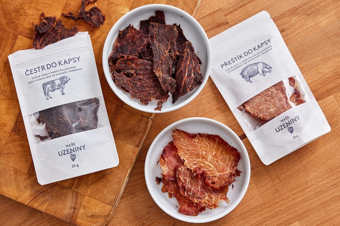 V autě, ve vlaku či při výšlapu. Rychlá svačina na cesty, když nestíháte nebo jen tak na chuť. Tam všude přijde vhod sušené maso s názvem Přeštík a Čestr do kapsy z Amasa. Balíčky jsou skladné, voňavé a plné bílkovin. Jak název napovídá, tyto jerky vznikají z hovězího masa plemene čestr a přeštických vepřů. Seženete je v řeznictví Naše maso nebo na jejich e-shopu.