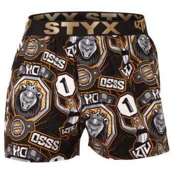 Pánské sexy trenky, ve kterých se každý muž bude cítit jako vítěz. Limitované trenky od Styx, na kterých se podílel český MMA bojovník Karlos „Terminátor“ Vémola jsou nejen kvalitní, ale i designově zajímavé. Trenky jsou ušity v perfektně padnoucím střihu v černo zlatém provedení s motivem vítězství – lva s korunou. Materiál trenýrek je 100% bavlna, takže je ideální i pro muže s citlivou pokožkou. Trenky jsou příjemné na celodenní nošení, ale i sportovní a jiné aktivity všeho druhu. Provedení a střih zaručují, že vytkávaná černá sportovní guma, látka a švy nebudou nikde škrtit a omezovat. Tyto trenýrky jsou baleny do speciální VIP dárkové krabičky.