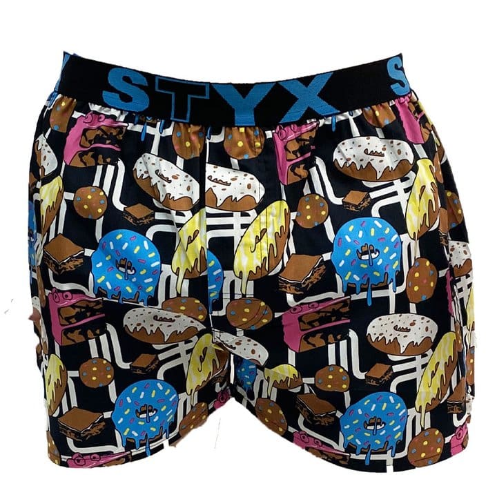 Netradiční trenky z nové kolekce, které jsou plné sladkých dobrot, jako jsou například barevné donuty, dortíky, cookies nebo brownies. Trenky jsou vytvořeny ze 100% bavlny, díky čemuž jsou velmi pohodlné na celodenní nošení, ale můžete je využít i na klasické domácí povalování. Mají vytkávanou gumu v pase, poklopec s knoflíčkem, v zadní části vloženy pátý díl, takže se při nošení nikde nezařezávají, netlačí ani neřežeou a příjemně se nosí.