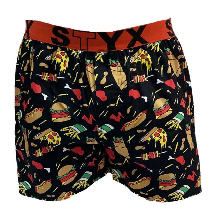 Stylové trenky z nové kolekce na sobě nesou výrazné veselé motivy těch nejoblíbenějších jídel jako jsou hamburgery, pizza, hot dogy, hranolky, kuře, špízy nebo wrap. Trenky jsou ušity ze 100% bavlny, díky čemuž jsou velmi pohodlné jak na celodenní nošení, tak na lenošení. Mají vytkávanou gumu v pase, poklopec s knoflíčkem a v zadní části vložený pátý díl, díky tomu se nikde nezařezávají, neškrtí ani neřežou a příjemně se nosí.