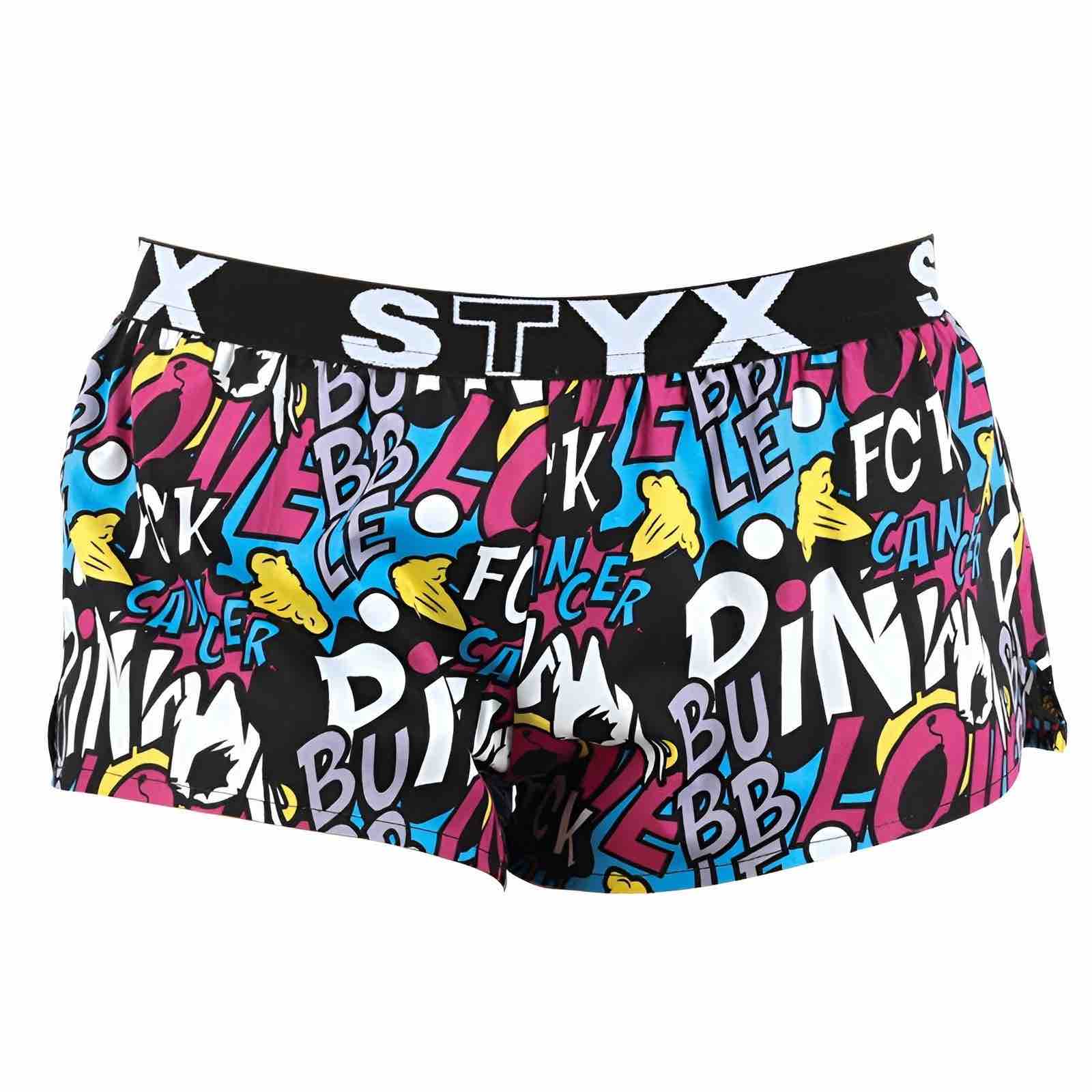 Dámské trenky Styx s komiksovými motivy s nápisy Pink Bubble a vytkávanou gumou v pase jsou ušity českými švadlenami ze 100% bavlny. Ty dbají na každý detail a především pohodlí při jejich nošení. Trenky tak nikde netlačí ani neškrtí a hodí se i na spaní nebo celodenní nošení.