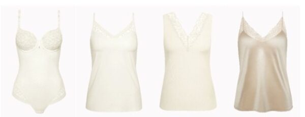 Zleva: body Lisca Essentials Opal, 1819 Kč; top Lisca Essentials Opal, 949 Kč; top Lisca Fashion Selena, 899 Kč; top Lisca Selection Destiny, 1379 Kč.