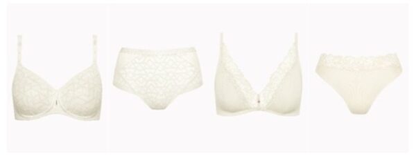 Zleva: podprsenka Lisca Essentials Opal, 1299 Kč; kalhotky Lisca Essentials Opal, 819 Kč; podprsenka Lisca Fashion Selena, 1049 Kč; kalhotky Lisca Fashion Selena, 499 Kč.