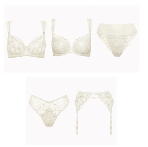 Zleva: podprsenka Lisca Selection Miracle, 1699 Kč; podprsenka Lisca Selection Miracle, 1779 Kč; kalhotky Lisca Selection Miracle, 899 Kč; kalhotky Lisca Selection Miracle, 899 Kč; podvazkový pas Lisca Selection Miracle, 1119 Kč.