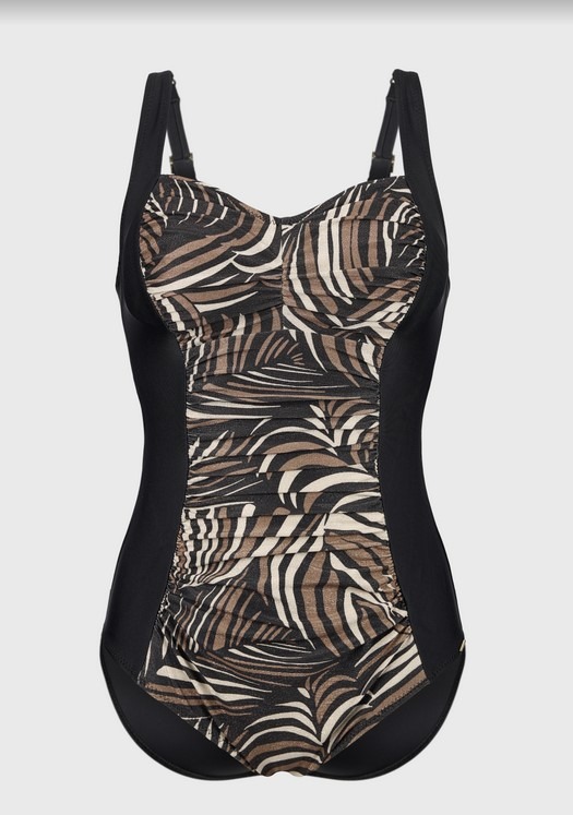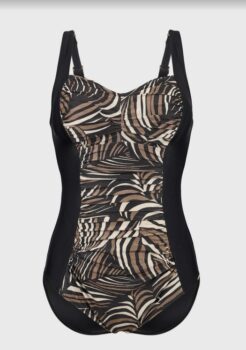 Tyto jednodílné plavky z kolekce Shiny Brown vás okouzlí perfektně padnoucím střihem a krásným designem, který provází celou kolekci. Podprsenka je vyztužená a bez kostic. Přední část plavek je podšitá formujícím materiálem, který vyhladí kontury těla. Decentní nařasení postavě lichot a opticky ji zeštíhlí, což ocení spíše ženy s plnějšími tvary.
