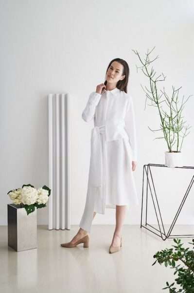 Modely se opírají o čisté, promyšlené střihy s minimem viditelných švů a každý z nich přináší rafinovaný detail – ať už jde o kaskádově tvarované košilové šaty, asymetrický top, široké culottes nebo zúžené kalhoty se sklady. Každý střih je dostupný v několika materiálových variantách, které určují výsledný charakter modelu – od formálního looku až po lehkou letní kombinaci. Variabilita střihů navíc umožňuje různé způsoby nošení pomocí jednoduché proměny modelu nebo přidáním minimalistického pásku.