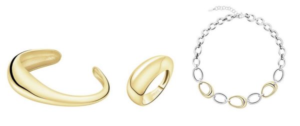 Pozlacený stříbrný náramek, 11 290 Kč, Pozlacený stříbrný prsten, 2 690 Kč, Pozlacený stříbrný náhrdelník, 8 190 Kč, vše APART