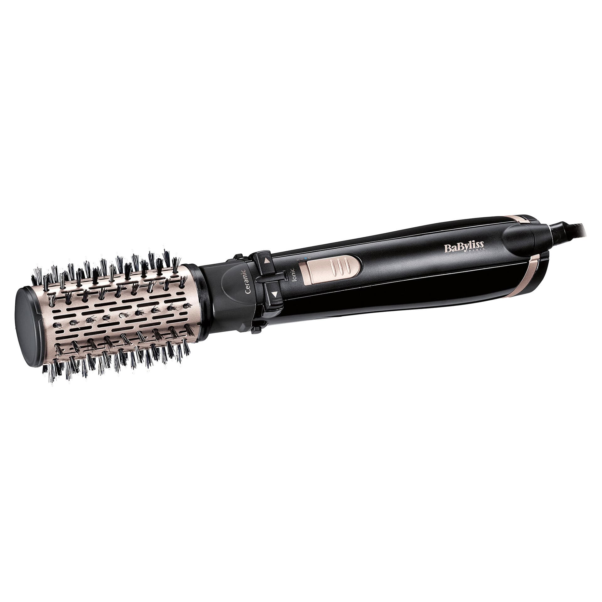 Pro všechny dámy, které preferují rychlý a šetrný styling s maximálním efektem, je tu rotační horkovzdušná kulma BaByliss AS200E.  Vlasy jednoduše podtočí a díky speciálnímu nástavci i narovná. A to vše bez šermování s kartáčem a fénem před zrcadlem. Stačí si vybrat jeden ze 2 kulatých nástavců (20mm nebo 50mm) s keramickým povrchem a rotační funkcí. Péči o zdraví vlasů nechte na ionizátoru, díky kterému budou vlasy i při pravidelném používaní hladké a lesklé. Tepelnou intenzitu vysoušení regulují 2 teplotní stupně, k dispozici  je i funkce studeného vzduchu.