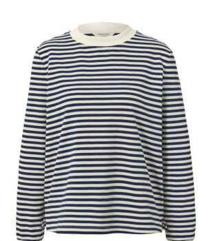 Triko je s bavlnou z udržitelné produkce. Má lodičkový výstřih a lehce spadlá ramena. V nabídce je s proužky v olivové a lila barvě. Předběžná cena 549 Kč.