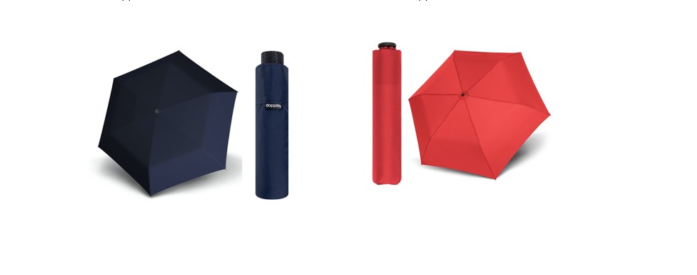 Lehké a skladné jednobarevné deštníky Doppler Havanna s velmi nízkou hmotnosti 160 g nebo dokonce deštník o hmotnosti pouhých 99 g, jak již sám název napovídá, Doppler Zero99, ocení každá dívka, maminka či babička.