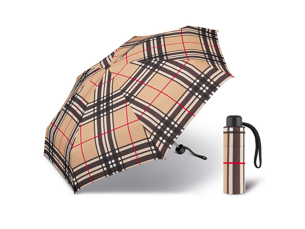 Některé mini deštníky jsou opravdu unikátní. Ve složeném stavu jsou malinké, nejsou sice tak úzké, ale oproti předchozím deštníkům jsou po roztažení ve velikosti klasického deštníku. Kárované Happy Rain petito nebo Happy Rain Red Rose s potiskem velkých červených růží potěší mnoho žen svými krásnými designy.