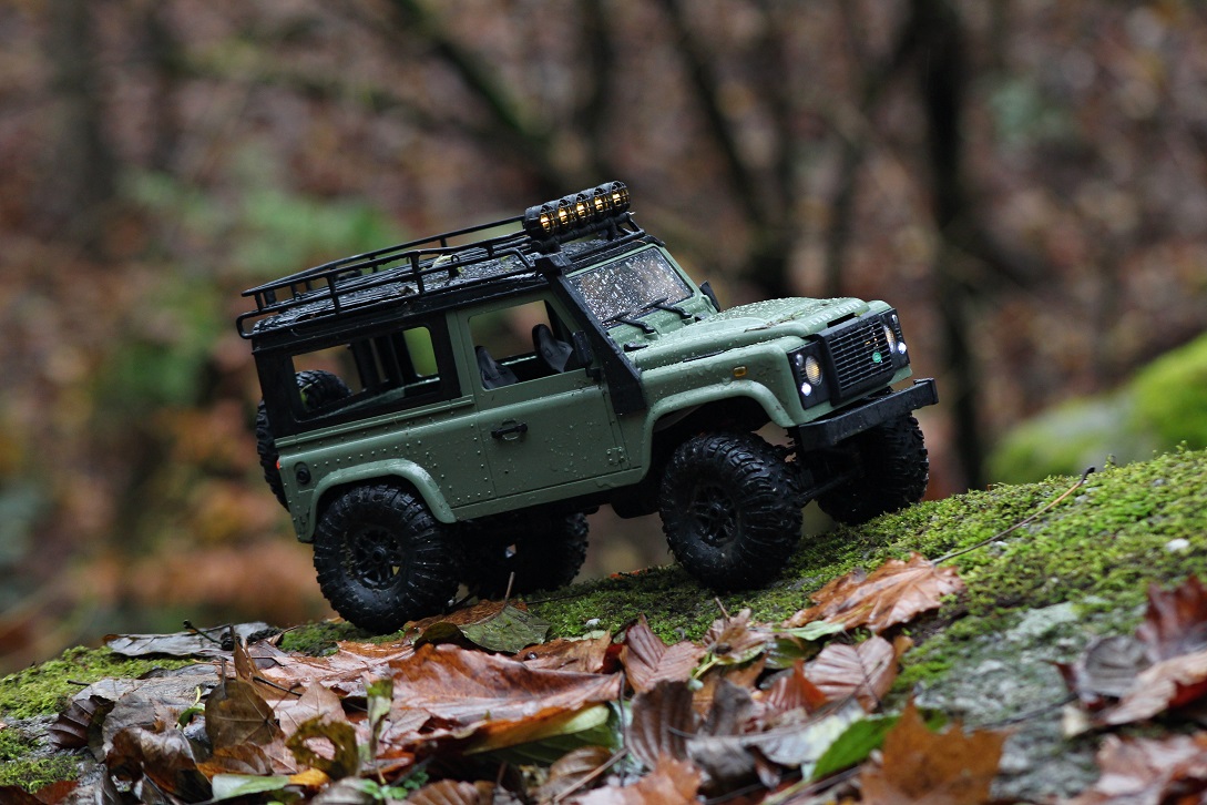 Nadčasová verze slavného britského auta LAND ROVER DEFENDER ukrývá pod kapotou přihrádku na akumulátor Li-on 7.4V 1200mAh. V balení jsou rovnou dva tyto akumulátory, díky kterým je doba jízdy cca 104 minut. Lze si ji ještě prodloužit dalším akumulátorem. Verze Defender je vybavenější vůz oproti předchozím verzím. Liší se plnou střechou, proporcionálním servem zatáčení, silnějším akumulátorem, blinkry a přibylo osvětlení rampy na střeše. Zvládne jakýkoliv terén včetně stříkající vody.