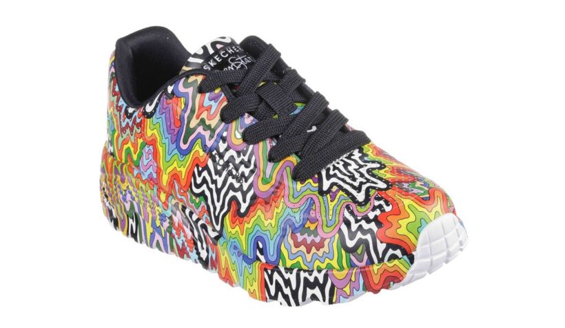 Klasické tenisky s masivním podpatkem dostávají zcela nový vzhled díky poutavým a barevně dynamickým designům z nejnovější kolekce Skechers x Jen Stark. Design nejen oslavuje známé vícebarevné kapání umělkyně Jen Stark na dolní části, ale také upoutá průhlednou podrážkou, která odhaluje atraktivní vzor po celé délce obuvi. Tyto živé barevné akcenty jsou spojeny s pohodlím zajištěnému díky speciálním vložkám Skechers Air-Cooled Memory Foam®.