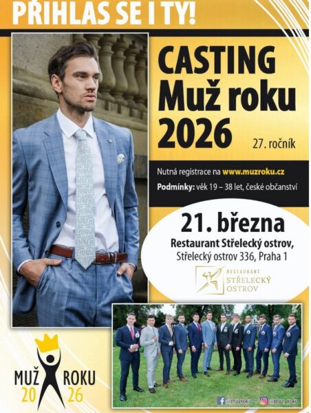 Přihlaste na casting soutěže Muž roku. Registrace je možná na www.muzroku.cz. První kolo castingu proběhne 21. března 2026 a druhé 25. dubna 2026.