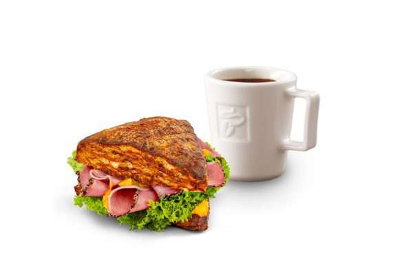 Lehká, ale chuťově výrazná volba pro každé denní jídlo. Křupavý trojhránkový sendvič z louhovaného pečiva, které vyniká jemně slanou chutí a lesklou kůrkou, je plněný plátky hovězího ořechu v pepři, mangovým chutney a čerstvým salátem. Nabízí originální spojení sladké a slané chuti v každém dokonale vyváženém soustu. V kombinaci s Caffè Crema nebo Espressem tvoří ideální pár pro pozdní snídani, rychlý, ale kvalitní oběd nebo odpolední pauzu. Cena: 139 Kč