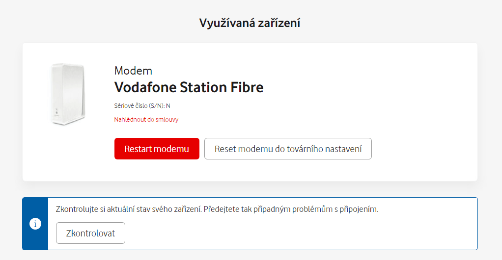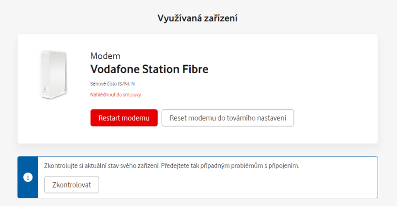 zákazníci využívají modemy od Vodafonu.