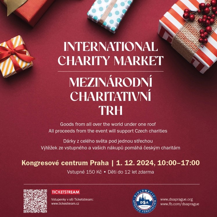 V neděli 1. prosince v Kongresovém centru Praha proběhne jednodenní Mezinárodní charitativní trh, který nabídne vánoční dárky a mikulášské dobroty z více než 40 zemí světa. Akce pořádaná velvyslanectvími se stala jednou z nejvýznamnějších událostí pražské vánoční sezóny. Výtěžek bude věnován českým charitativním organizacím.