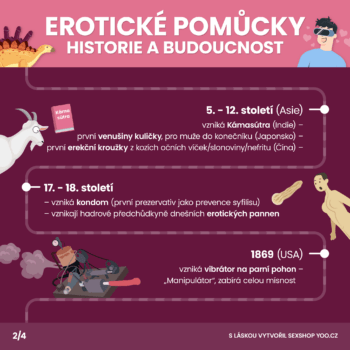 V čem se liší a v čem naopak podobají dnešní sexuální hračky těm historickým? „Podobnost najdeme především v základní funkci – ať už se jedná o historickou nebo moderní hračku, jejím hlavním účelem je poskytnout sexuální potěšení. Společným rysem je také variabilita – současné i minulé pomůcky jsou v mnoha tvarech a velikostech, aby vyhovovaly různým uživatelům. Lidé také vždy hledali způsoby, jak pomůcky inovovat a vylepšovat. Uživatelé jsou stále náročnější na kvalitu zpracování a materiálů, i na design. Dnešní pomůcky umožňují například propojení s mobilními aplikacemi, vzdálené ovládání, počítání spálených kalorií… I když se takto vylepšené hračky zdají lákavé, více než 80 % zákazníků je pořád konzervativních a technologické vychytávky nepreferují,“ vysvětluje Michal Večeřa, zástupce českého online sexshopu YOO.cz