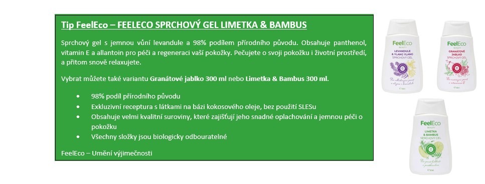 FeelEco kosmetická řada pro péči o tělo nabízí šampóny, sprchové gely a tekutá mýdla s vysokým podílem přírodního původu (98 %). Všechny přípravky jsou veganské a šetrné k citlivé pokožce. Receptury a vůně jsou inspirovány přírodou, mezi bioaktivními složkami najdete panthenol, vitamin E, allantoin, glycerin a extrakt z horské arniky. Jsou biologicky odbouratelné a neobsahují žádné škodlivé chemikálie. „Receptury připravujeme z jedinečných surovin a jejich kombinací tak, abychom zajistili maximální péči o zdraví zákazníků i jejich pokožky. Produkty jsou díky svým vlastnostem vhodné i pro osoby s citlivou pokožkou. Od samého počátku se v kosmetických produktech vyhýbáme barvivům i jakýmkoliv mikroplastům, protože věříme, že v kosmetických produktech nemají mít místo. Bohužel, tyto látky jsou stále běžně používány v konvenční kosmetice a i drogerii. FeelEco mohou zákazníci používat s čistým svědomím, že pro své zdraví i přírodu dělají to nejlepší,“ uzavírá Radek Marták.