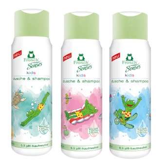 Frosch Senses Dětské sprchové gely a šampony jsou vyvinuty s recepturou zajišťující extra jemnou péči pro citlivou pokožku dětí. Výtažky z pšeničného proteinu usnadňují rozčesávání dětských vlásků a dodávají jim vitalitu. Jemné složení neštípe v očích a je pH neutrální. Frosch Senses sprchový gel a šampon pro děti je k dostání ve 3 barevných provedeních – růžové, zelené a modré. Doporučená cena 300 ml balení je 85,90 Kč.