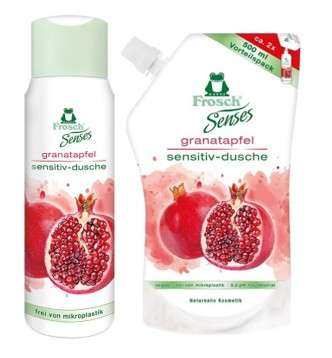 Sprchový gel s výtažky z granátového jablka si vás získá svým přírodním složením s neutrálním pH obohaceným o panthenol i příjemnou vůní granátového jablka. Sprchový gel je dermatologicky testovaný, neobsahuje škodlivou chemii a je vhodný i pro osoby s citlivou pokožkou. Náhradní náplň sprchového gelu obsahuje o 70 % méně plastu než originální balení. Doporučená cena 300 ml balení i náhradní náplně 500ml je 85,90 Kč.