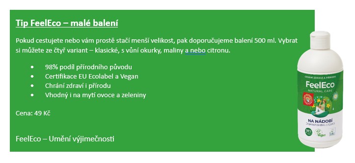 Jak jsme zmínili již výše, zkuste si z různých pramenů zjistit co nejvíce dostupných informací a dbejte na to, aby byl přípravek vyvinut s ohledem na potřeby pokožky, ale zároveň plnil dobrou funkci při mytí nádobí. Aby opravdu neobsahoval jen odmašťující látky, které by mohly vaši pokožku narušit, což může vést k podráždění, ke svědění, až k popraskání kůže. Při rozhodování u nákupu vám mohou pomoci buď certifikace, které výrobek má, případně si zkontrolujte jeho složení. „Všechny FeelEco produkty vyvíjíme s ohledem na lidské zdraví, proto obsahují vysoký podíl přírodního původu a neobsahují žádné nežádoucí látky. Záleží nám také na tom, aby byly snadno biologicky rozložitelné. Proto jsou základem produktu aktivní látky původem z rostlinných olejů. Účinnost produktu vyplývá z vhodné kombinace těchto aktivních látek s dermatologicky aktivními složkami zajišťujícími jemnost k pokožce,“ uvádí Radek Marták, ředitel výzkumu a vývoje FeelEco. Zároveň doplňuje, že účinnost a ekologickou šetrnost přípravků FeelEco potvrzuje mezinárodní certifikace EU Ecolabel, kterou značka získala jako první v České republice již v roce 2010.