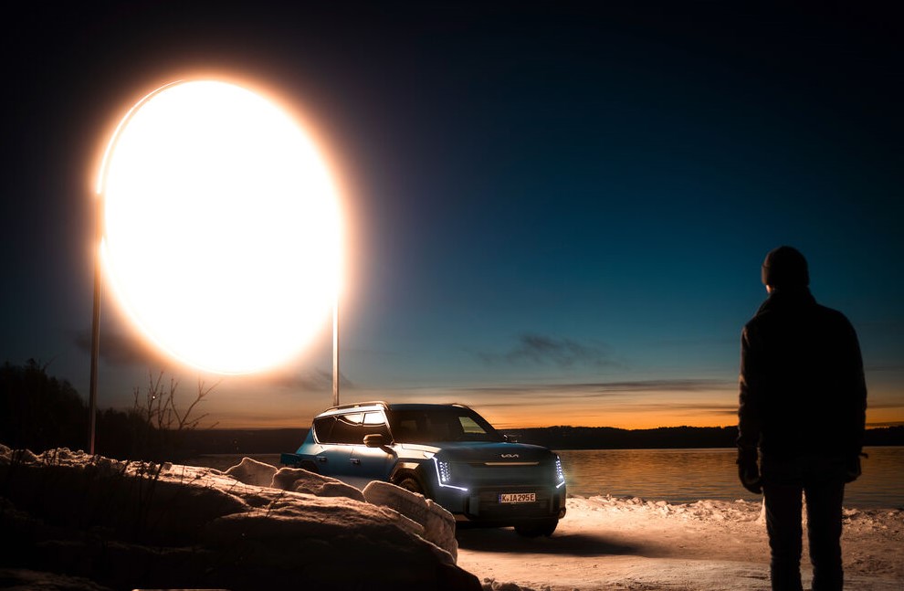 Jedinečná instalace značky Kia, sestávající z pětimetrového LED kotouče napájeného vozidlem Kia EV9 a vybudovaná ve spolupráci se studiem zážitkového designu VOID a kreativní agenturou Innocean, přinesla sluneční svit do jedné z nejtemnějších oblastí Norska, kde v zimě slunce téměř nevychází.