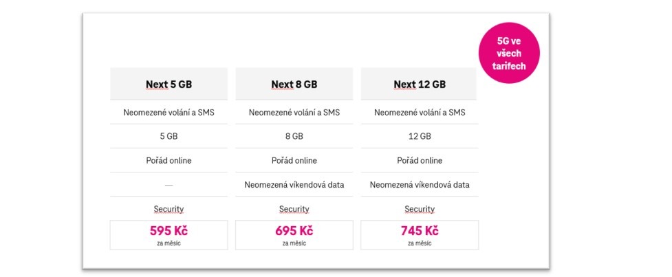 o benefity komfortního doručení či televizní zábavu od renomovaných partnerů na 12 měsíců zdarma. A plánují se další novinky: „Jako digitální leader chceme být našim zákazníkům nablízku a přinášet jim nabídky a služby, které reflektují jejich potřeby i aktuální trendy – ať jde o konzumaci zábavního obsahu, pohodlí při vyzvedávání zásilek, vylepšené datové balíčky nebo bezpečnost. Mobilní telefon je bránou do virtuálního světa a nové portfolio přináší exkluzivní kombinaci služeb, které často zákazníci využívají na různých místech. Nyní je mohou mít jednoduše a komfortně dostupné na jednom místě v našem unikátním programu Magenta Moments,“ komentuje novinky Maximiliano Bellassai, obchodní ředitel pro rezidentní zákazníky T-Mobile. Tarifní řada nové generace Next je určena koncovým a firemním zákazníkům bez rámcové smlouvy. V nabídce se nezapomíná ani na mladé a mobilní internet. Navíc je pro zájemce, kteří přejdou na nové tarify Next do 31. 8., připraven bonus – dva měsíce v novém tarifu za cenu původního.