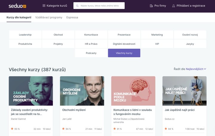 Podle největšího českého online vzdělávacího portálu Seduo.cz patří mezi top 5 nejžádanějších témat kurzů angličtina, MS Excel osobní rozvoj (zvládání emoci, prokrastinace, vyjednávání), leadership a umělá inteligence.