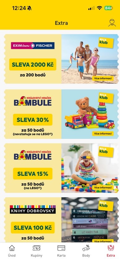 Od října nabízí partnerský program BILLA Klubu slevy na nákup zájezdů cestovní kanceláře EximTours/Fischer, hračkářství Bambule, knih Dobrovský, domácích spotřebičů Whirlpool a Kärcher, nádobí Tescoma nebo sportovního oblečení AlpinePro. „Princip je jednoduchý. Naši zákazníci za každý nákup u nás, ať už v kamenném obchodě, nebo na našem e-shopu, sbírají věrnostní body do své aplikace. Za každých 50 korun získají 1 bod, které mohou následně přeměnit za slevu u našich partnerů. Záleží pak vždy na konkrétní nabídce, ale například na zájezdech se jedná o slevy ve výši tisíců korun, u elektrických spotřebičů to pak je sleva až 37 %, což je rovněž nemalá úspora,“ popisuje Pavel Hosnedl, manažer věrnostních kampaní společnosti BILLA Česká republika.