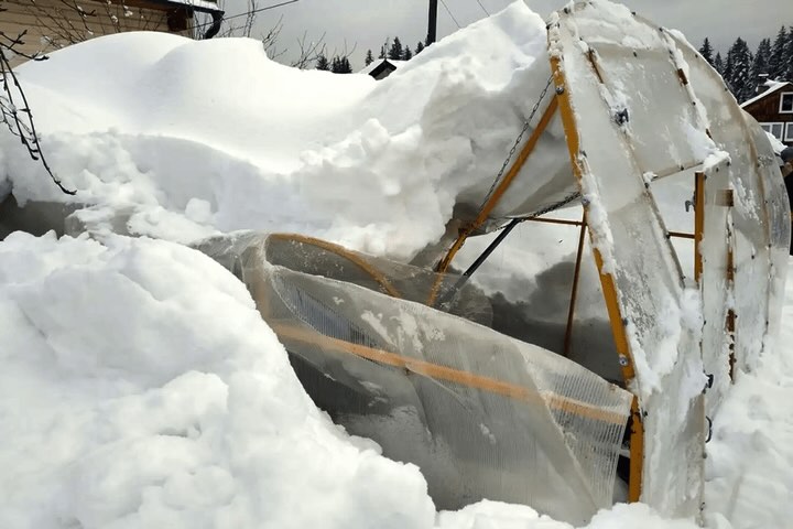 U polykarbonátových skleníků taková hmotnost dokáže vylámat panely z rámů. V takovém případě je šance zakoupit nové panely a skleník opravit. Ovšem ani skleníky se skleněnou výplní nemusí hmotnost sněhu vydržet. Několik stovek kilogramů sněhu dokáže polámat i velice odolné ocelové konstrukce. Určitě se proto nemusí vyplatit čekat, zda skleník zimním testem projde bez úhony.