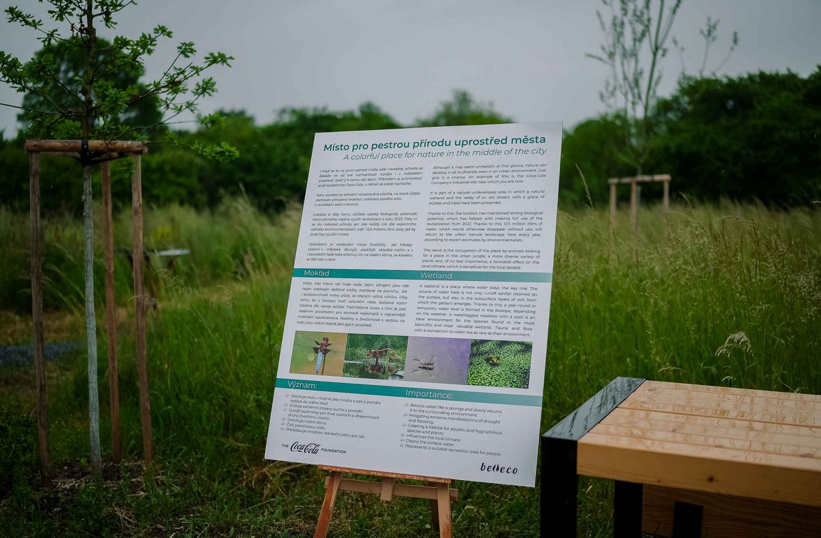 Kde je voda, tam je život. Tento neoddiskutovatelný fakt bezezbytku platí i pro pomyslný ostrov divoké přírody, který vznikl v těsném sousedství pražského výrobního závodu společnosti Coca-Cola. Unikátní mokřad se využívá k zadržení dešťové vody, která by jinak končila v kanalizaci. Zásadním způsobem tak pomáhá k podpoře biodiverzity a celkovému ochlazování okolí. Do městské přírody přirozeně vrací asi 12,5 milionu litrů vody ročně. Při příležitosti Světového dne životního prostředí byl mokřadní biotop slavnostně otevřen. Nově je v něm i dřevěný altán a a naučná stezka, které návštěvníky provedou celým prostorem mokřadu.