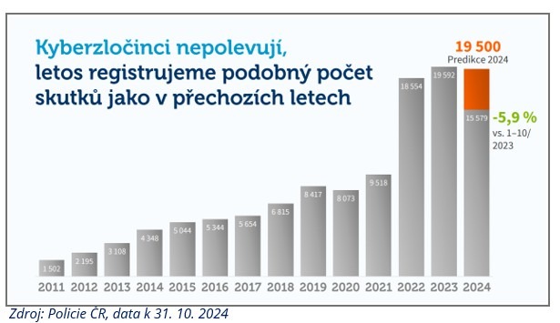 Téměř polovina kyberzločinů v České republice se odehrává v internetových bazarech. Přibližně dvacet procent pak tvoří investiční podvody, které způsobují největší finanční škody. K tomu se přidávají další hrozby jako podvodné telefonáty, falešné e-shopy, vydírání, romantické podvody a další.