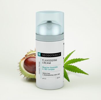 Ochranná a regenerační péče o pokožku s bioaktivními flavonoidy a CBD. Zklidňuje, vyživuje a chrání pokožku. Vhodný pro ošetření suché, šupinaté a svědivé pokožky, zejména podrážděné kompresními punčochami. Obsahuje kanabidiol a originální lipozomální účinnou látku FLAVODERMTM VC z extraktů 9 tradičních a českých léčivých bylin (plodu kaštanu, natě komonice, slupek pohanky, listu jinanu, kořene pampelišky, natě třezalky, natě řepíku, natě lnice a oddenku kosatce), bohatou na směs bioflavonoidů.