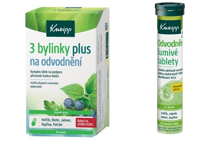 Mezi nejsilnější byliny pro odvodnění patří petržel, jalovec a kopřiva, které pro podporu zdravého organismu využíval již samotný Sebastian Kneipp. Jejich kombinace zajišťuje normální funkci ledvin, očistu jater a žlučníku, ale také minimalizaci otoků a přísun velkého množství vitamínů a minerálů prospěšných pro celé tělo. Tuto magickou trojici zkombinovala značka Kneipp s hořčíkem a biotinem, látkami, jež napomáhají celkovému procesu odvodňování a podporují zdravý životní styl.