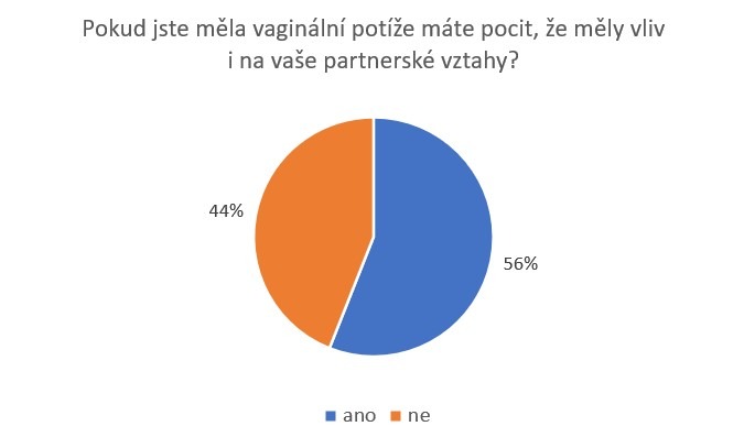 Problémy s vaginálním zdravím, jako jsou záněty nebo svědění, negativně ovlivňují každodenní život ženy včetně partnerských vztahů u více než poloviny žen (56 %), zejména ve věku 36–44 let. 85 % z nich se kvůli těmto problémům vyhýbá sexuálnímu styku, 39 % žen pociťuje zvýšený stres a úzkost a třetina žen zaznamenává pokles sebevědomí, což vede k celkovému úbytku pohody ve vztahu.