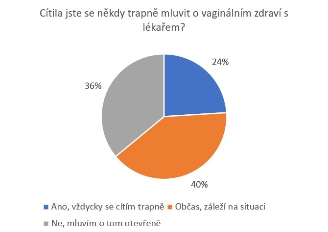 Dalším zjištěním průzkumu je, že ženy často váhají mluvit o intimním zdraví s lékařem. Každá čtvrtá žena (24 %) se cítí trapně při rozhovoru o vaginálních problémech a více než třetina (38 %) odkládá návštěvu lékaře. Až 15 % žen se rozhodne pro samoléčbu. „Ostych mluvit s lékařem může vést k přehlížení důležitých příznaků. Otevřená komunikace a vzdělávání jsou klíčem k prevenci a udržení zdravého vaginálního prostředí,“ upozorňuje gynekoložka MUDr. Kristýna Koutná.