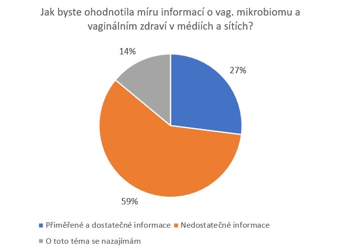 Průzkum ukázal, že více než 70 % dotázaných žen nemá přesné informace o vaginálním mikrobiomu nebo o tomto pojmu nikdy neslyšelo. Zároveň 59 % žen považuje informace o intimním zdraví v médiích a na sociálních sítích za nedostatečné.