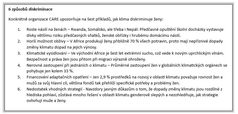 „V organizaci CARE se věnujeme humanitárním a rozvojovým aktivitám po celém světě. A naši kolegové vidí přímo na místech, kde působí, jak extrémní počasí zhoršuje kulturně danou diskriminaci žen a dívek. Příběhy a data, která jsme poslední tři roky sbírali, dojem z praxe jen potvrdily,“ vysvětluje Katarína Král z CARE Česká republika.